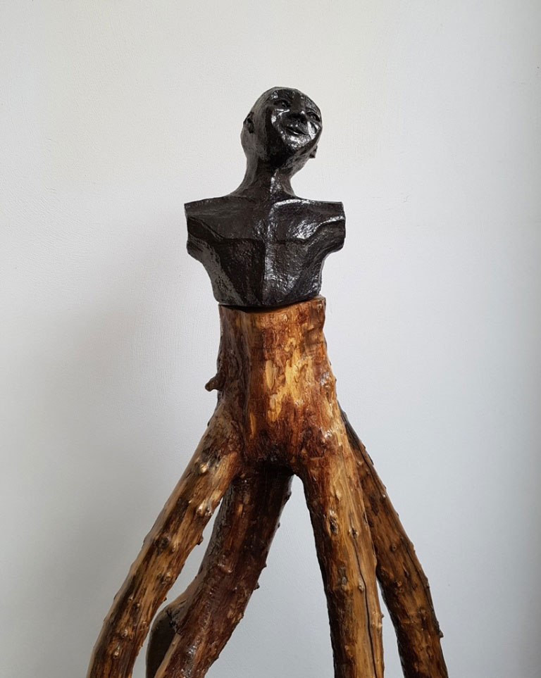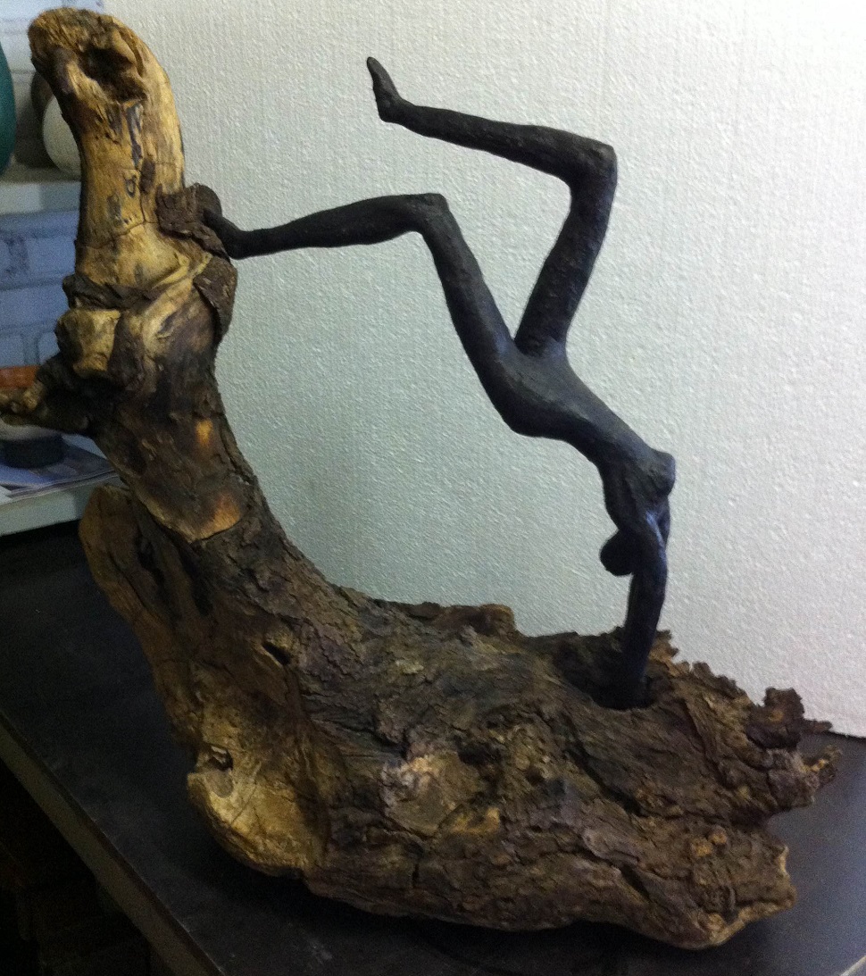 Deze beelden delen veel overeenkomsten met de serie "Houding & Beweging". Deze serie onderscheidt zich echter door het gebruik van natuurhout. Dit hout is prachtig op zichzelf en dit is ook het uitgangspunt geweest bij het creatieve proces. Alle beelden die samengaan met het hout zijn specifiek gemaakt om elkaar te complementeren.