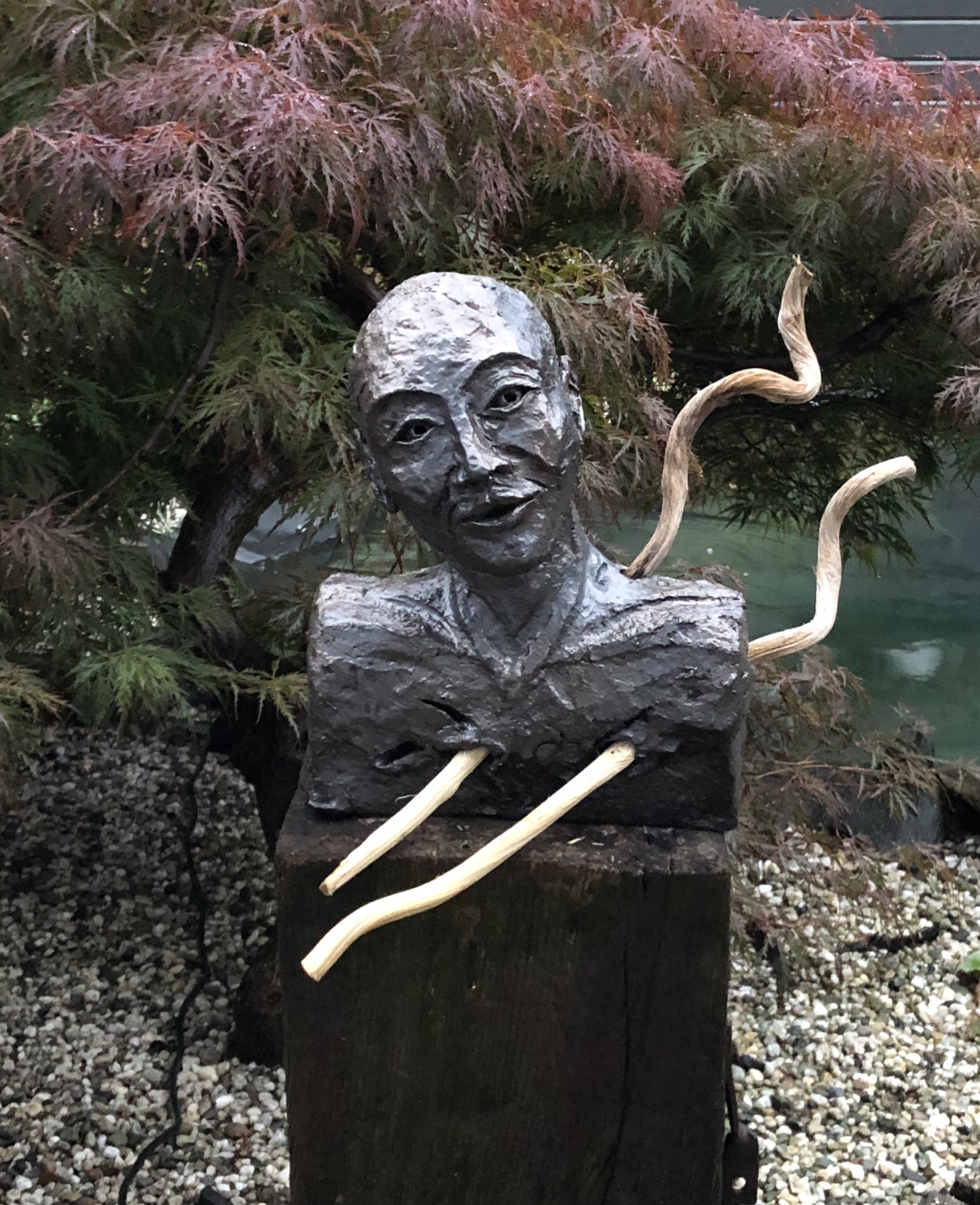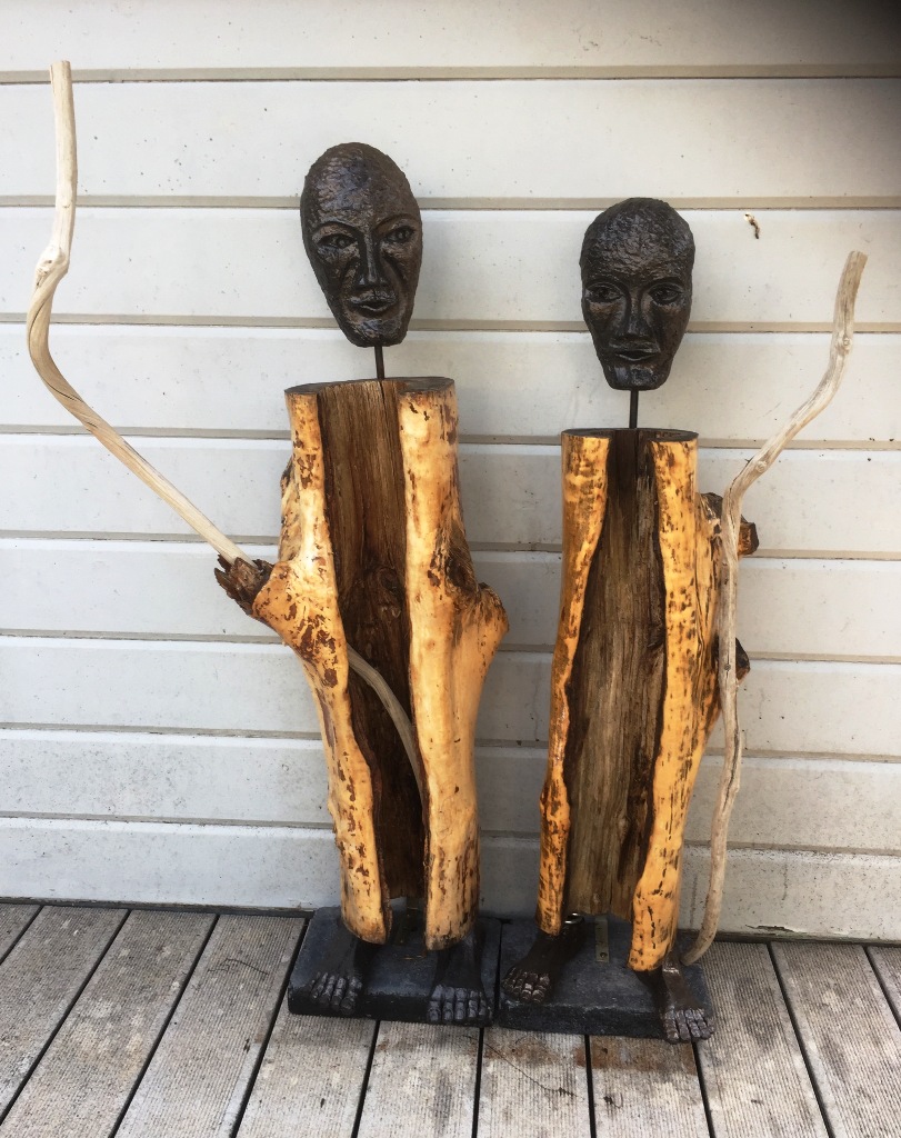 Hier staan beelden die speciaal gemaakt zijn voor in de tuin.